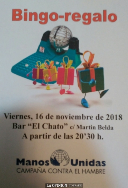 Recuerda, el viernes 16 de noviembre a las 20:30h bingo solidario de Manos Unidas, ¡acude!
