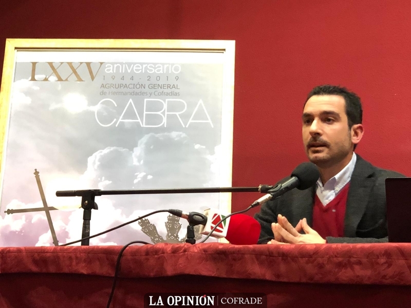 Partiendo del año 1944 y aportando numerosos datos, muchos de ellos hasta ahora desconocidos. En su disertación, reconstruyó la historia de la música procesional partiendo de una investigación que lleva realizando varios año. El recorrido empezaba en los años cuarenta y cincuenta donde destacaban por encima de todo dos bandas: la banda municipal de Cabra y la Banda del Ave María. Por entonces la música procesional no tenía el papel protagonista de hoy y acudían otras formaciones musicales de cornetas venidas de fuera de Cabra como la banda de cornetas de la Cruz Roja de Córdoba. Como singularidad, también era muy frecuente la participación de una escuadra de cornetas y tambores dentro de la Centuria Romana del Divino Prisionero.
