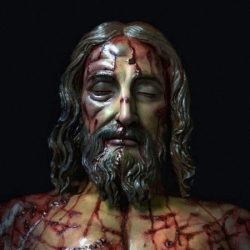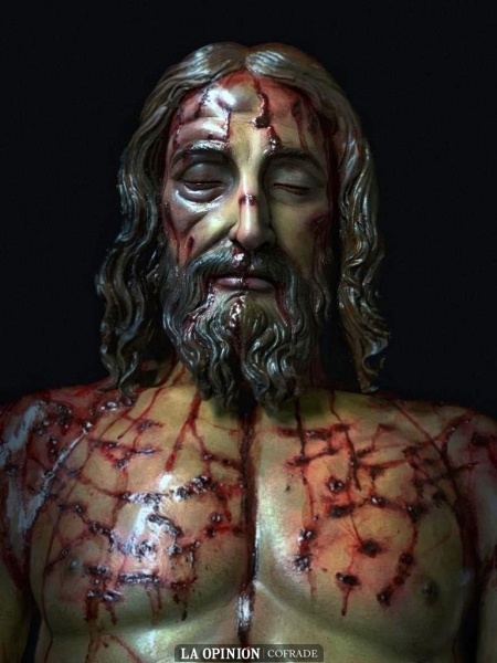 La lanzada se produjo tras la muerte y atravesó el cuerpo del Crucificado entre el quinto y el sexto espacio intercostal y hasta esta escultura del profesor Miñarro, no se había representado nunca la herida de la lanzada que salió por la espalda.
