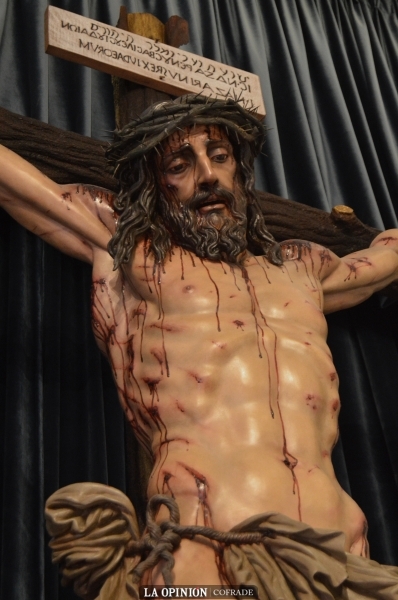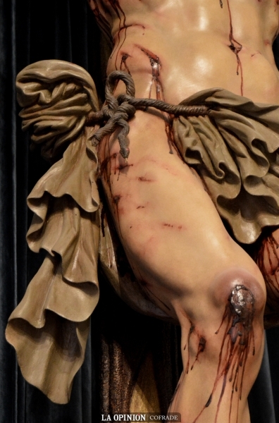 De una anatomía realista inspirada en modelos clásicos de escultura, podemos ver que las heridas son del todo veristas, con una interpretación de lesiones y de sangre, según estudios forenses. El paño de pureza es de plegado menudo, de una gran naturalidad y se ciñe con una cuerda que forma un amplio nudo que en realidad es una serpiente, símbolo del pecado; mientras que las varetas de la corona esconden entre las espinas un caracol, símbolo del padecimiento, de la lenta agonía de la muerte a la que Jesucristo con su sacrifico vence y concluye.