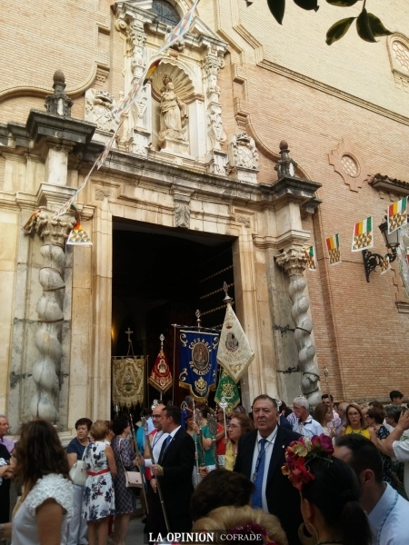 Una celebración religiosa en la parroquia de Santo Domingo de Guzmán, presidida por el padre Domingo Conesa, de la Orden de la Santísima Trinidad (Trinitarios) que ha sido rector de la Basílica menor y Real Santuario de la Virgen de la Cabeza de Andújar, precedió a la procesión de la Virgen de la Cabeza por las calles de Cabra. Junto al padre Conesa concelebró el diácono egabrense Ángel Maíz Tejero, en una celebración que llenó el templo parroquial y en la que cantaron los hermanos del coro de la Virgen de la Cabeza Coronada de la vecina localidad de Rute. Junto a ellos, una veintena de cofradías filiales (entre ellas Martos, Alcalá la Real, Rute, Arjonilla, Jaén, Valenzuela, Alcaudete, El Carpio, Sevilla, Fuerte del Rey, Baena, Málaga o la matriz de Andújar) acompañaron a la de Cabra en esta celebración con sus estandartes y tradicionales banderas, acompañando en la misa y en la procesión a los hermanos de la Cabeza de nuestra ciudad en su décimo aniversario tras la reorganización de la cofradía filial en 2009. Numerosas hermanas lo hicieron vestidas con la clásica mantilla española y no faltaron representaciones de cofradías egabrenses, entre ellas las de San Rodrigo, la Archicofradía de María Santísima de la Sierra o la Agrupación de Cofradías. También hubo representación municipal, asistieron a la misa el alcalde de Cabra y la alcaldesa de Baena y acompañó en la procesión el diputado provincial y delegado de Tráfico del Ayuntamiento de Cabra, Guillermo González. La representación eclesiástica, con capa pluvial, cerraba el cortejo procesional. En la plaza de España, ante el Ayuntamiento se realizaron el tradicional tremolar de las banderas de las cofradías filiales y también el coro de Rute, que acompañó todo el recorrido, cantó a la Virgen.