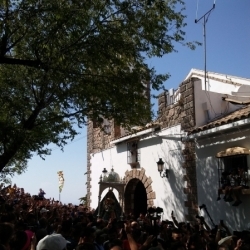 Luego vendría el rezo del santo Rosario y a las cuatro repicaban gozosas las campanas de la espadaña de la Sierra para anunciar la inminente salida de la Virgen de la Sierra. Y se hizo el milagro de ver salir las andas que albergan a la "Palomita de la Cueva" en su traslado a la ciudad entre el clamor, vítores, aplausos y emoción de las miles de personas congregadas en torno a Ella.