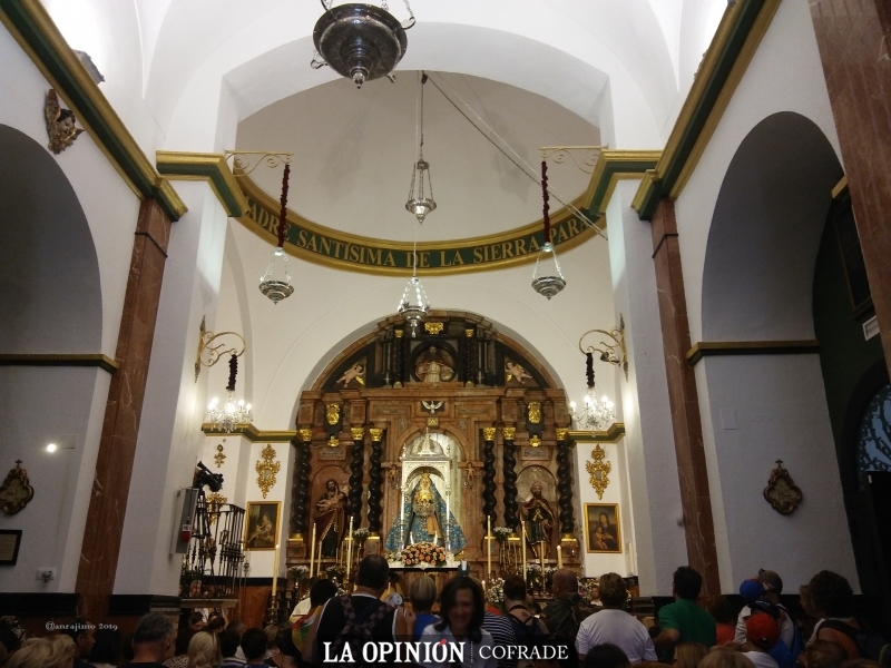 Fueron muchas las personas que llenaron la iglesia del santuario y tras la misa, se fueron llenando también los alrededores del Picacho esperando que el reloj marcara la hora fijada para la salida de la Virgen por la puerta de los miradores. Sobre la cueva de la "ocultación" ondeaba, como en otros lugares de la cima, Sitio Natural de Interés Nacional desde 1929, la bandera de la Virgen de la Sierra, como en los grandes días de la devoción serrana.
