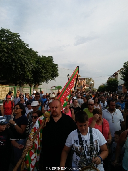Una bajada "ligera y que permitió andar bien a los costaleros" como señalaba a La Opinión el hermano mayor de san Rodrigo, José Morales Arroyo, se desarrolló sin incidentes y con una tarde que no fue excesivamente calurosa. Las paradas tradicionales del camino fueron haciendo más llevadero el duro camino de la Virgen y en la Casilla de la Salve, con el canto de la tradicional y antigua melodía de esta oración que realizaron Antonio Roldán padre e hijo mientras las mujeres portaban las andas de la Divina Serrana. Luego los hermanos Egea cantaron unas originales, sentidas y emotivas sevillanas en las que sus letras llamaron nuevamente la atención. Dedicaron una de ellas a Manolo Sabariego (qepd) el abanderado de la Virgen y de nuevo la emoción se pudo sentir ante la Virgen y entre los olivares de la Sierra.