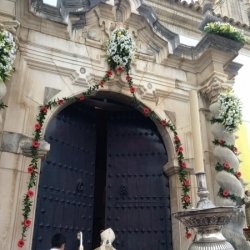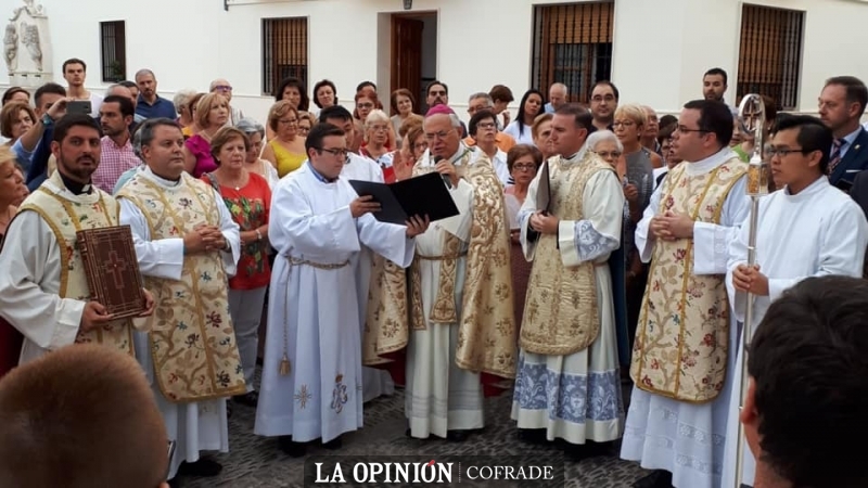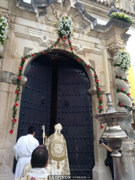 El acto religioso se iniciaba en las inmediaciones de la parroquia, en la plaza de Rubén Darío y desde ahí se procedió a la apertura de la puerta santa. Para ello la puerta barroca del templo se encontraba engalanada y fue abierta por el obispo de Córdoba, monseñor Demetrio Fernández, danto así paso a esta conmemoración jubilar.