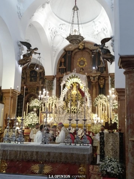 Junto al párroco de la Asunción, José Antonio Jiménez Cabello, los párrocos de los Remedios y Santo Domingo, Francisco Delgado y el de San Francisco y San Rodrigo, Manuel Rodríguez, el de la Asunción de Priego de Córdoba, Ángel Cristo Arroyo y el diácono Ángel Jesús Maíz, el obispo de Córdoba abría la puerta santa y accedía al templo. Representaciones municipales, religiosas e institucionales se encontraban entre el pueblo en la celebración eucarística ante la imagen de la Virgen de la Sierra que lucía el manto azul marino "de las palomas".