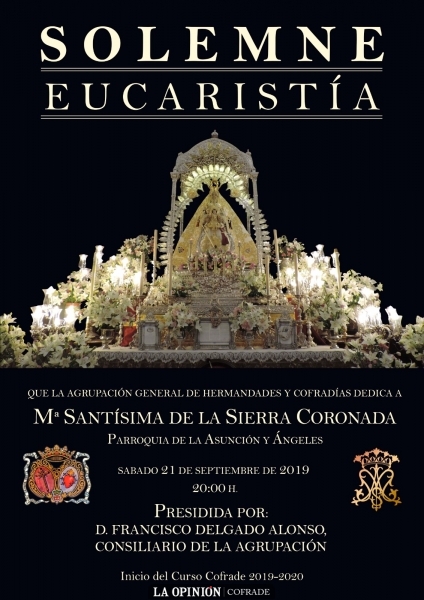 La Agrupación general de Hermandades y Cofradías de Cabra abre el nuevo curso cofrade 2019-2020 con la celebración de la eucaristía en la parroquia de la Asunción y Ángeles ante la venerada imagen de nuestra patrona, María Santísima de la Sierra.
