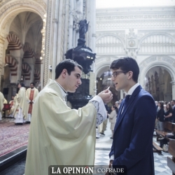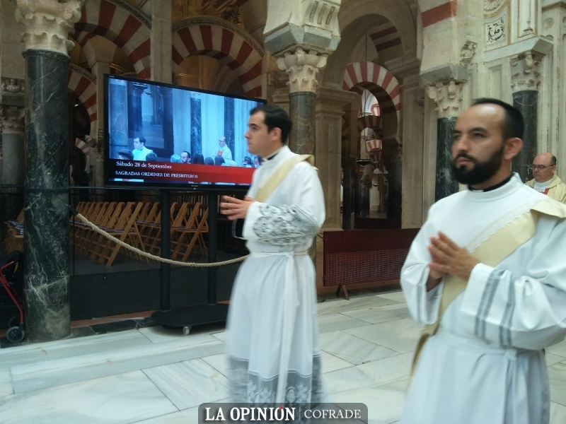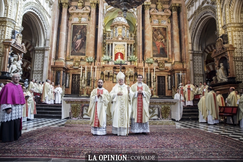 En la celebración, los nuevos presbíteros han estado acompañados por el rector y formadores de los dos Seminarios, el Seminario Conciliar "San Pelagio" y el Redemptoris Mater "San Juan de Ávila", así como por sus compañeros seminaristas, gran parte del clero cordobés, sus familiares y amigos. Numerosas personas llegadas de Cabra han acompañado al nuevo sacerdote egabrense Ángel Jesús Maíz Tejero, al que ha impuesto la casulla su tío el también sacerdote egabrense José Antonio Tejero Cárdenas. También el párroco de Santo Domingo y los Remedios, Francisco J. Delgado, así como los sacerdotes egabrenses Vicente Castander, José Antonio Tejero, Jesús Poyato y Juan José Jiménez, ambos canónigos de la S.I.C., que han concelebrado con el obispo y los nuevos presbíteros.