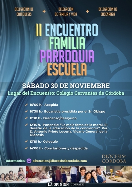 12:15h- Ponencia: La mala fama de la moral. El desafío de la educación de la conciencia. Impartida por el vicario general de la diócesis, Antonio Prieto Lucena.