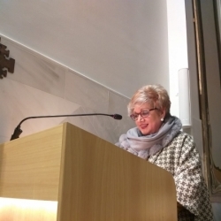 María Dolores Márquez intervino mostrando su gratitud y sorpresa al haber sido designada para una tarea que ella, siendo presidenta, comunicó a los pregoneros del periodo de su mandato. Sus palabras fueron de reconocimiento a su familia y las personas más cercanas en su vida personal y cofrade, destacando la responsabilidad que entraña realizar el pregón de nuestra Semana Santa y la toma de conciencia de ser ella la que ha de proclamarlo ante al pueblo egabrense en el Teatro El Jardinto el domingo 29 de marzo. También anunció que su presentador el domingo del Pregón será el cofrade David Herrador Navas, anterior hermano mayor de la Sentencia y Paz a la que tan vinculada está la pregonera.