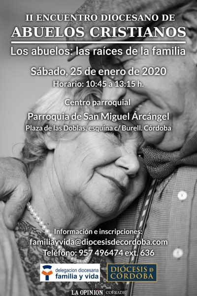 Este encuentro se dedicará a la "Espiritualidad de los mayores" y transcurrirá en varios momentos, a lo largo de la mañana, en los que habrá tiempo para la oración comunitaria y personal; y tiempo para la formación y diálogo sobre el tema propuesto. Desde la delegación de Familia y Vida, animan "a todos nuestros mayores a participar en esta mañana de convivencia, formación, reflexión y oración, que seguro les ayudará en el desempeño de ese papel tan importante que hoy llevan a cabo los abuelos cristianos en sus familias".