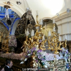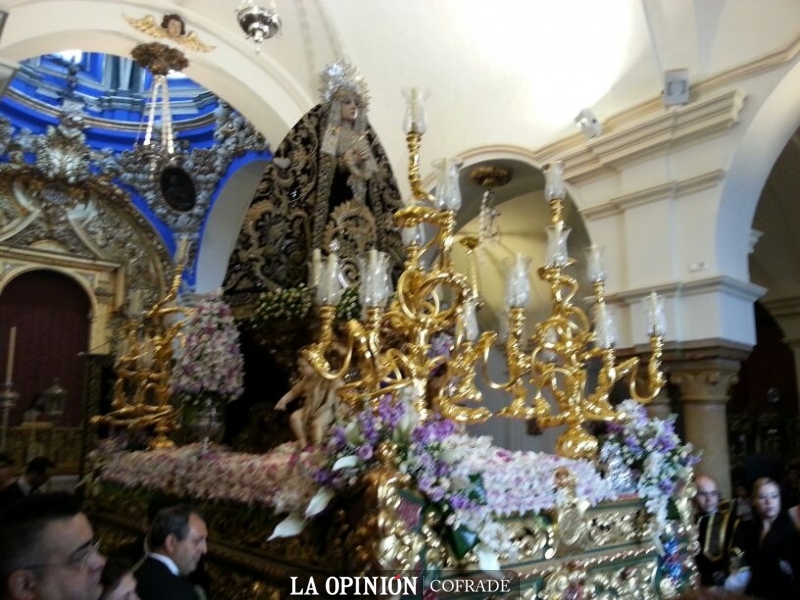 Tras las palabras del Párroco Emérito Don José Burgos y del Consiliario, Rafael Flores, la Imagen de la Soledad fue colocada en el centro de la Parroquia de los Remedios para que todas las personas que se agolpaban en el exterior pudieran contemplar la belleza de la Imagen de Mena.