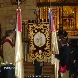 Si la tarde del jueves estuvo centrada en la ofrenda de flores ante la imagen de la ermita en la Plaza de España de Andújar, en este viernes se están recibiendo las cofradías filiales que llegadas de toda España, participarán en la Romería del Cerro del Cabezo. Una de las cofradías filiales participantes, es la de Cabra que se reorganizó hace cinco años, aunque fue creada en el siglo XVI.