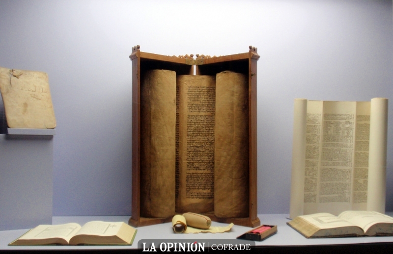 En otros apartados documentales la muestra recoge ejemplares de libros sagrados de las tres grandes religiones: Biblia, Torá y Corán; así como diversos elementos litúrgicos, como rosarios o filacterias.
