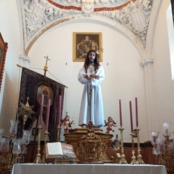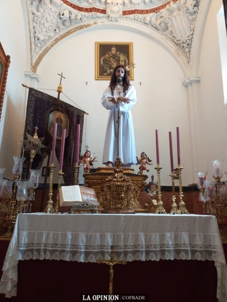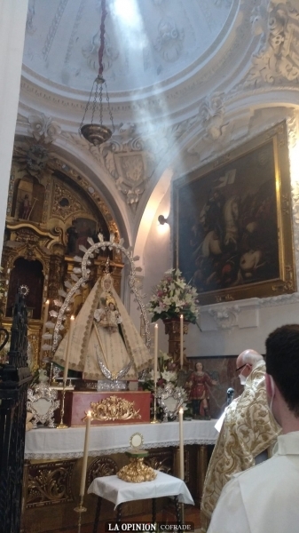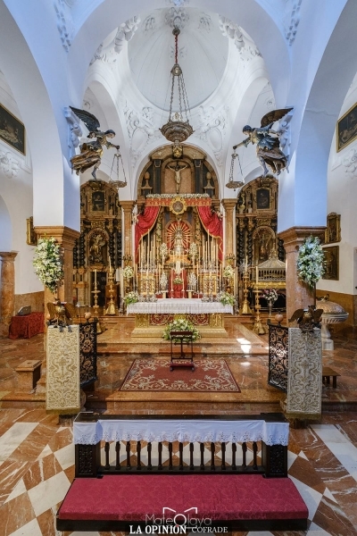 En este sentido, además de un solemne altar de cultos ante el retablo marmóreo del presbiterio, con la magnífica custodia de la cofradía del Corpus de Cabra, se habían preparado para recibir al Santísimo las capillas de Jesús Preso, de la Virgen del Socorro, el Sagrario (con la Virgen de la Sierra de la Porciúncula), de la Columna, de la Oración en el Huerto y los retablos de san Rodrigo y de la Virgen del Mayor Dolor. Y montaron altar dentro de la parroquia las cofradías del Nazareno, Dolores y Piedad en el coro; la del Buen Fin bajo el espléndido cuadro de la Virgen de los Ángeles; el Sepulcro en el retablo de Santa Catalina; la Expiración y la Sentencia y Paz, así como el Cristo de la Sangre que depositó un centro de flores bajo la imagen del Crucificado del Lunes Santo.