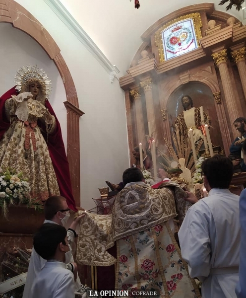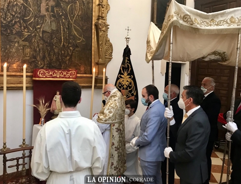 Las condiciones de la fase de desescalada han permitido la asistencia y participación de un número determinado de personas en la jornada eucarística del pasado jueves, en el triduo que terminaba en la noche del sábado y en la celebración de este Día del Señor, en el domingo del Corpus, con la eucaristía concelebrada y la posterior procesión claustral con el Santísimo bajo palio por las naves del templo parroquial de la Asunción y Ángeles.