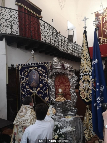 Finalmente en la mañana de este Domingo del Corpus, el párroco de la Asunción y Ángeles, José Antonio Jiménez, ha presidido la función concelebrando los tres anteriores y en la que la Schola Cantorum y su director Manuel Calahorro al órgano barroco, han cantado las distintas partes de la misa. Y al término se ha procedido a la procesión claustral con el Santísimo en el viril de la custodia y bajo palio, que ha ido realizando estaciones en los distintos altares instalados dentro del templo por hermandades así como en las capillas de la parroquia.