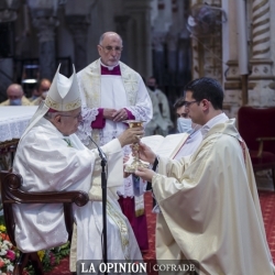 Monseñor Demetrio Fernández ha hecho hincapié en la importancia de dos aspectos fundamentales para la vida de un sacerdote: el celibato y la pobreza. Respecto al primero, el Obispo ha explicado cómo Jesucristo ha llamado a cada uno de los sacerdotes a estar con Él. "Jesucristo nunca nos abandonará, desgraciados seremos si lo abandonados, Él nunca nos deja ni se arrepiente de los dones que ha dado, unos dones que son irrevocables y este tesoro que hoy Dios pone en vuestras manos lo llevamos en vasijas de barro que se rompen, para que se vea que una fuerza tan grande es de Dios y no procede de nosotros. Esta es la conciencia permanente en el ejercicio del ministerio sacerdotal que os acompañará toda vuestra vida", ha exhortado al tiempo que ha llamado a los nuevos sacerdotes a vivir el sacerdocio y a ejercerlo en el celibato, en la entrega de amor a Jesucristo y a la Iglesia.