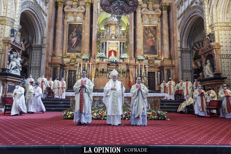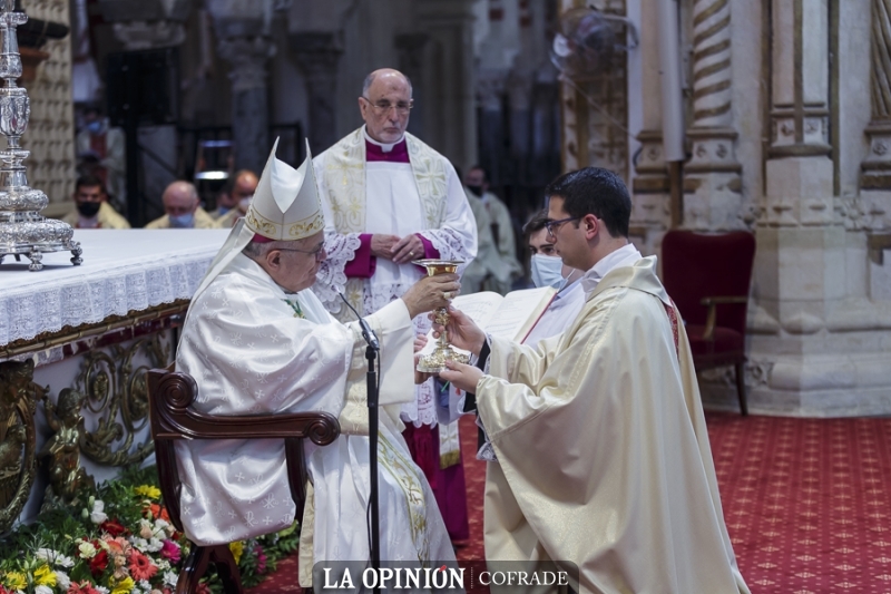 En su homilía el obispo de Córdoba ha pedido a Javier y a Mario parecerse a Jesucristo, recordándoles: "Jesucristo quiere daros por el sacramento del orden un corazón como el suyo, que sea capaz de tener contacto directo con Dios Padre, con Jesucristo el Señor, y un corazón sensible para ver que la tremenda desgracia del hombre de nuestro tiempo, no es la pandemia o lo económico, sino el pecado". Ha indicado que "la gran desgracia del corazón humano es que se aparte de Dios y no se de cuenta" y ha asegurado que "el sacerdote está para recordar y llamar a cada uno con entrañas de misericordia".