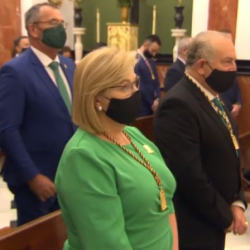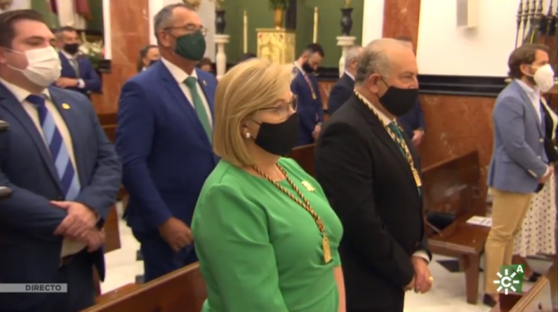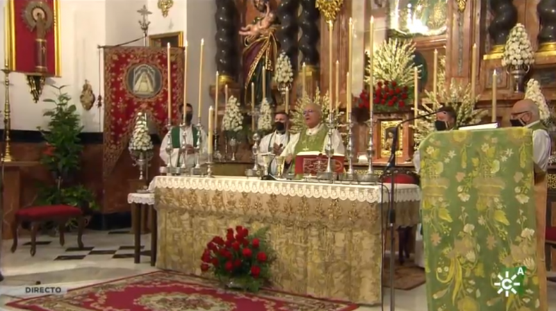 A la celebración, no obstante, han asistido miembros de la Archicofradía, hermandad de san Rodrigo y costaleros de la Virgen de la Sierra, presidente de la Agrupación de Cofradías, alcalde y autoridades locales que, respetando la distancia de seguridad y con mascarilla, llenaban los bancos de la iglesia del Santuario de Cabra. Con el trasfondo de la "bajá" como han señalado desde comunicación de Canal Sur TV, la imagen venerada de nuestra Patrona estaba vestida con el manto verde de la Vizcondesa de Termens de 1912, y con la corona de la Coronación Pontificia, adornada con centros de nardos y rosas. "Que María Santísima nos haga entender este lenguaje y aroma del Evangelio, rodeada de nardos, de rosas y de claveles expresión de los egabrenses que la llevan en su corazón", como decía el obispo en su homilía.