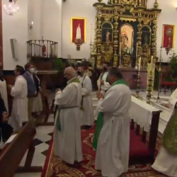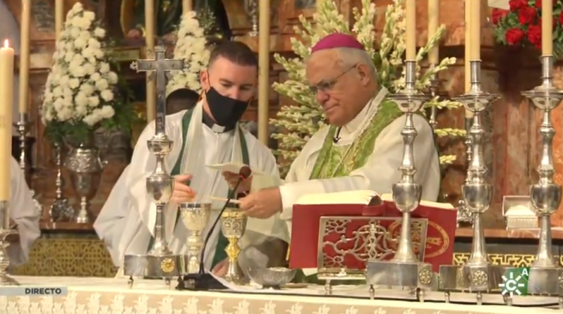 De nuevo se ha referido monseñor Fernández a la estancia de la Virgen en Cabra y decía que "la Bajá de este año se hará discretamente, no hay otra posibilidad, las normas lo exigen por nuestro bien, y la expresión de amor que cada año la acompaña la haremos este 2020 desde nuestro corazón".