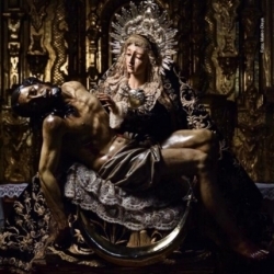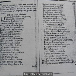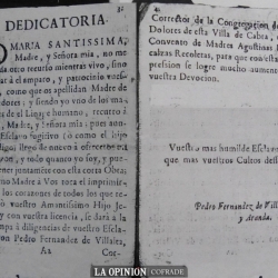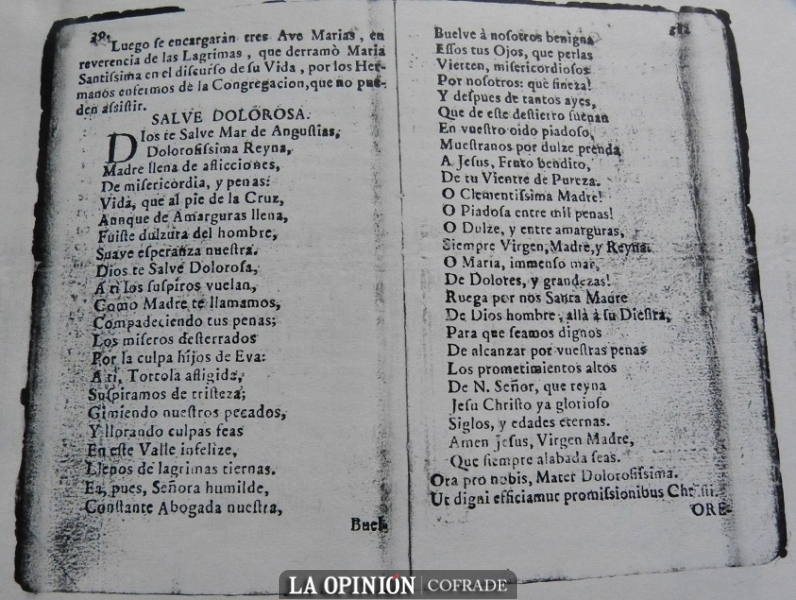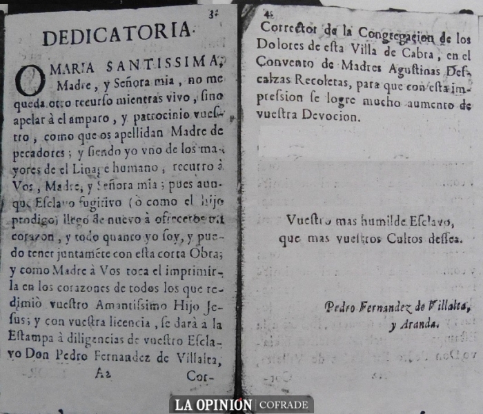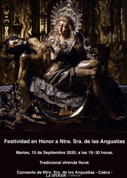 Desde su llegada a Cabra en 1697 con las fundadoras agustinas, la imagen de Nuestra Señora de las Angustias con su Hijo yacente, ha recibido la veneración y devoción filial de los egabrenses. Unos meses después de su venida a Cabra, el miércoles de Ceniza de 1698, se hicieron los hábitos de los Dolores en la congregación servita de Cabra, que rezaba la Corona Dolorosa meditando las devociones a los Siete dolores de María, con himnos compuestos para esta especie de "rosario" de siete misterios, en los que se rezan siete Ave Marías.