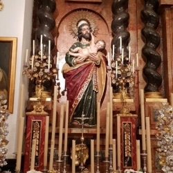 El Santuario de nuestra patrona se une así a esta convocatoria del Año jubilar de San José y para ello, una vez desmontando el tradicional nacimiento, se ha preparado en el lateral del retablo mayor, un altar extraordinario con la imagen de San José que se ha adornado de modo especial.