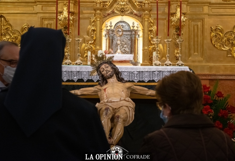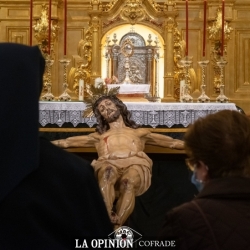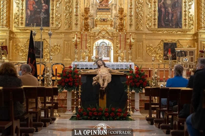 En Santo Domingo, en esta nueva Cuaresma de 2021, el Cristo de la Expiración se nos ha mostrado cercano y vivo, en la quietud de un rezo silente. Y lo hemos contemplado entre el rojo y negro de paños, flores y cirios, en la solemnidad del majestuoso retablo dorado y ante la mirada devota de las Hijas de la Caridad, de la parroquia de Santo Domingo y de sus hermanos que, en estos días celebran su triduo.
