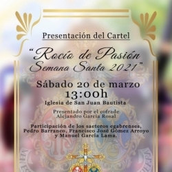 - Presentación del cartel de la hermandad del Rocío de Pasión, a cargo de Alejandro García Rosal. Iglesia del Cerro, sábado 20 de marzo, a las 13:00h. Actuarán también los saeteros Pedro Barranco, Manuel García Lama y Francisco J. Gómez Arroyo.