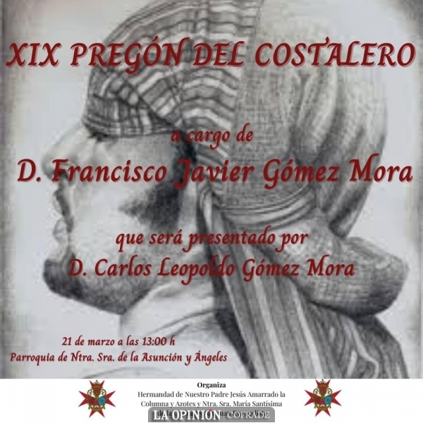 - XX pregón del costalero, a cargo de Fran Gómez Mora. Parroquia de la Asunción y Ángeles, domingo 21 de marzo, a las 13:00h.