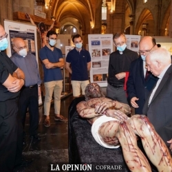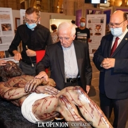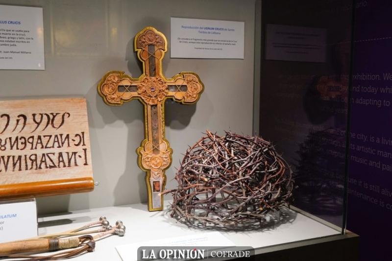 Otra de las piezas que podrá encontrar el visitante es una cruz a tamaño real con un crucificado y también información del Sudario de Oviedo, que según explicó Rodríguez, se puede afirmar, tras las últimas investigaciones científicas, que estuvo en la cabeza de la misma persona de la Sábana Santa al coincidir las heridas de uno y otro paño.