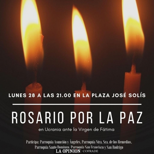 El lunes 28 de febrero a las 21:00h en la plaza José Solís de la Barriada Virgen de la Sierra, las cuatro parroquias de nuestra ciudad convocan al rezo de un Rosario por la Paz.