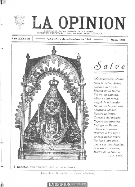 Si hay una plegaria dedicada a la Virgen de la Sierra conocida y que con el tiempo ha calado entre la devoción serrana, esa es sin duda "Amorosa Madre", una música exquisita y profunda sobre un magistral poema de Juan Soca. ¿Pero cuándo fue compuesta? ¿Cuándo se estrenó?