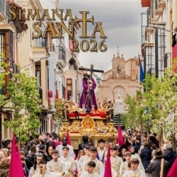 Delante caminan los añafiles, con su renovada indumentaria y la juventud que atesoran estos antiguos heraldos de la Pasión. Asoman capuchones, se ordena la antepresidencia, y a los lados, como siempre, el pueblo: quieto, expectante, entregado. En el centro, soberano y sereno, Nuestro Padre Jesús de las Necesidades, el Señor "de las Tres Gracias". La devoción de Cabra hecha figura, sosteniendo la escena y la memoria.