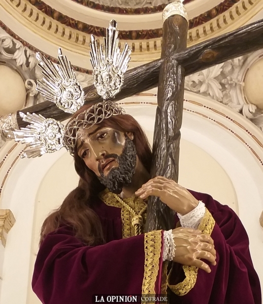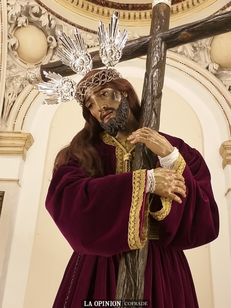 El cuerpo tiene un tallado elemental, al estar destinada la imagen a ser vestida con una túnica. La iconografía es la normal de un Nazareno. Lleva las piernas separadas, en posición de caminar. En el hombro izquierdo se conserva parte del perno sobre el que se colocaba la cruz. Al comienzo de la espalda, a unos diez centímetros del comienzo de la misma, están los huecos de los dos tornillos que sujetaban la placa metálica, con perno, que servía para fijar la cruz y evitar su giro. Distinto tratamiento han tenido, como es lógico, la cabeza, las manos, las entrepiernas y los pies. Concebido para llevar la Cruz a cuestas, hay que descartar su iconografía original como de Cristo Varón de los Dolores. Destaca el naturalismo que se observa en manos y piernas, donde resalta el estudio de las venas. En las manos se observan varios repintes. La imagen siempre ha llevado pelo o cairel.