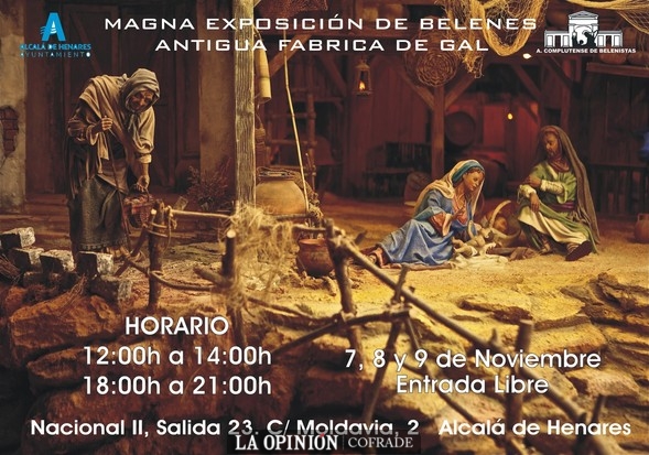 Una de las actividades más llamativas que tendrán lugar en esta primera Feria Nacional de Belenismo es la Magna Exposición de Belenes en Alcalá de Henares, que tendrá lugar en un espacio de más de 1000 metros cuadrados, la antigua fábrica de GAL, donde podrán verse expuestos 30 pequeños belenes, 7 grandes dioramas, así como exposiciones de figuras de diferentes imagineros y cacharrería de la que se usa en el montaje de los belenes o "nacimientos". Todas las piezas que podrán verse en esta magna exposición, ha sido realizado a lo largo de sus 19 años de historia por los miembros de la Asociación Complutense de Belenistas.