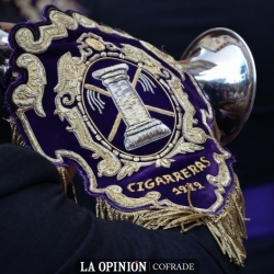 No podía ser otra banda que Cigarreras. Jesús Preso se presentaba ante el pueblo de Cabra de forma solemne y elegante, en una estampa singularísima, no tan habitual como cada Jueves Santo. El Señor estaba más imponente si cabe, desprendiendo recogimiento, austeridad y carácter devocional, bellamente exornado en su paso ejerciendo un gran magnetismo sobre todo el que lo contemplaba. Ante tal mayestático conjunto, sólo una música cuidada y de delicada armonía podía poner el contrapunto y el acompañamiento. Era la primera vez que escuchábamos a la banda de cornetas y tambores Mª Stma. de la Victoria de Sevilla en las calles egabrenses (antes, habían ofrecido dos conciertos en nuestra localidad). Conocida popularmente como la banda de las Cigarreras, para quien esto escribe es sin duda la mejor banda de cornetas y tambores y, probablemente, una de las mejores bandas en el contexto de los tres estilos conocidos de marcha procesional (cornetas, agrupación y banda de música) Su amplia trayectoria y el extraordinario cultivo que hace de la música, como verdadero elemento artístico de valor, así lo avalan.