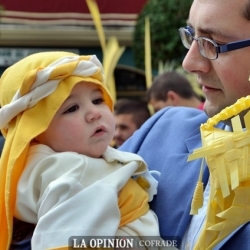 O la niña, qué más da, que se viste de hebreo, estrena la Semana Santa de Cabra. La primera luz del Domingo de Ramos es suya, y con su palma inunda de color nuestras calles y con su rama de olivo da un mensaje de paz y esperanza a todas las personas de buena voluntad. El niño que se viste de hebreo es el ojito derecho de la abuela, la baba caída del tito, el yerno perfecto para cualquier madre. Es el brillo de la mirada que a todos los cofrades de Cabra se le advierte cuando el domingo de pregón escuchan por fin "Cofradías Egabrenses".